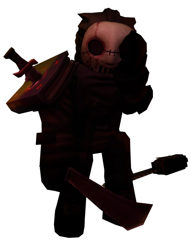 In FORSAKEN lore, Slasher is a bacon-haired prisoner of war from the Roblox action-animated war film The Last Guest by ObliviousHD. After being captured, he was sent to Area 51 and subjected to brutal, inhumane experiments. During this time, he was exposed to the Necrobloxicon, a cursed book whose mysterious voice convinced him it was his mother. He later escaped alongside Jeff The Killer and Slenderman, continuing to commit acts of violence under the book's influence.